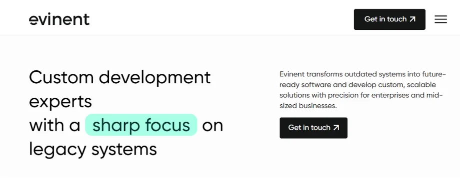 Evinent is een boutique software-engineeringbedrijf dat zich onderscheidt door intensieve samenwerking en directe senior-betrokkenheid bij elk project.
